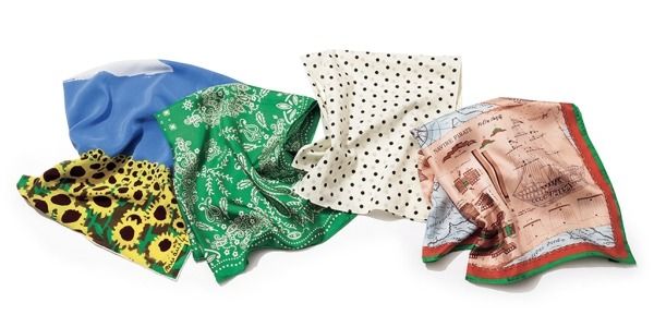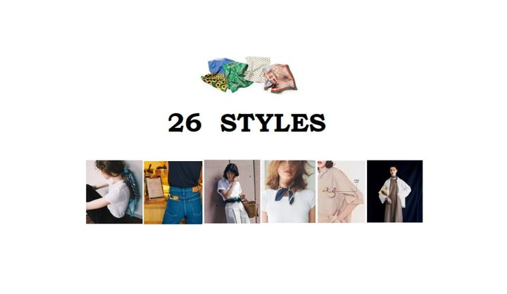 柄も色もとり入れやすい、上質でなめらかなスカーフ。使い方次第ではカジュアルに、さらに何通りものアレンジだって楽しめる。髪に巻いたり服に結んだり、かわり映えのするアイディアの実例集。