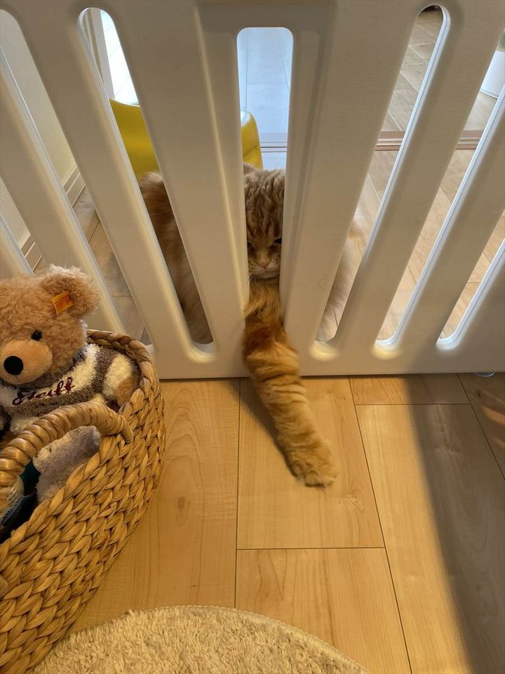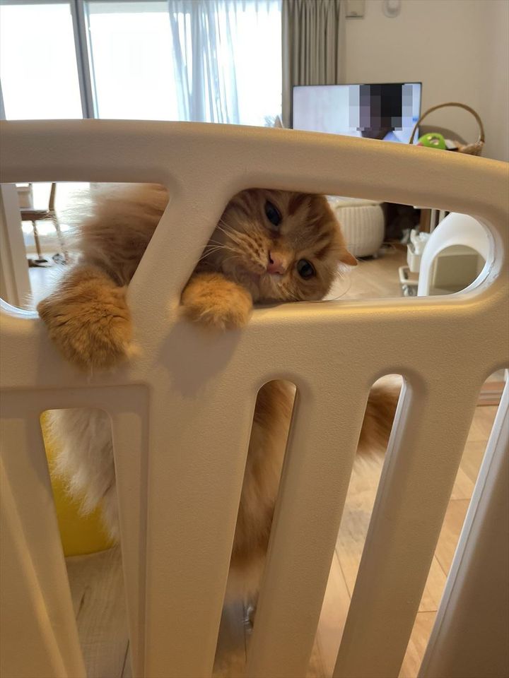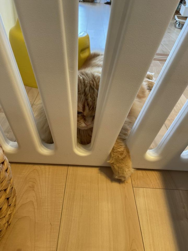 赤ちゃんの近くに行きたくて仕方がない!? ベビーサークルに入りたがっている様子のネコが話題になっています!