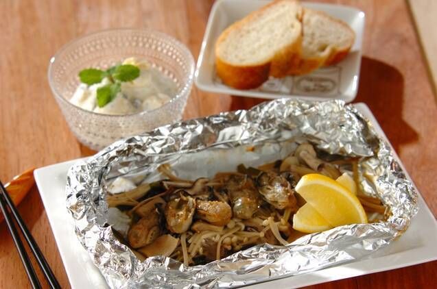 一人336kcalのダイエット献立。肝臓の働きを良くする栄養素が含まれるカキに、食物繊維たっぷりのキノコを組み合わせたヘルシーな献立です。ホイル焼きは手軽に作れるうえ、洗い物も少なく済みますね。話題のスーパーフードのチアシードにバナナを合わせたデザートは腸内環境を整えるデザートです。