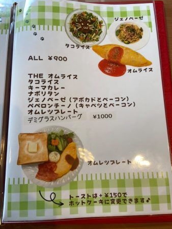 タコライス・ナポリタン・デミグラスハンバーグ等メニューの種類がとても豊富でした。