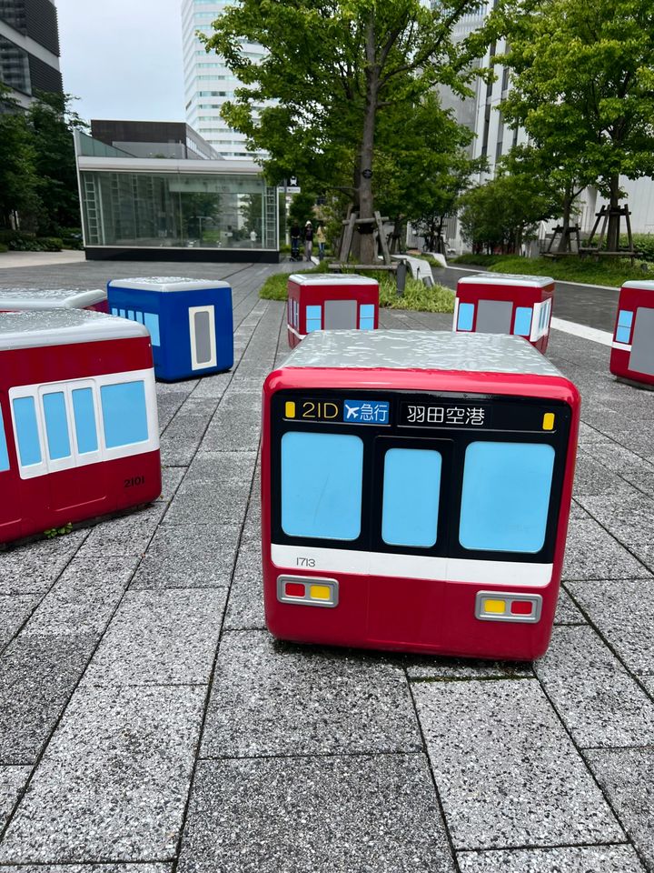 椅子のように円になって置いてあるかわいい京急も外にありました。こちらでもちびっこ2人は大はしゃぎ!思ってた以上にコンパクトで飽きちゃうのか心配していた私と妹ですが、入れ替えの時間ギリギリまでたっぷり遊べて子鉄達は大満足そうでした!