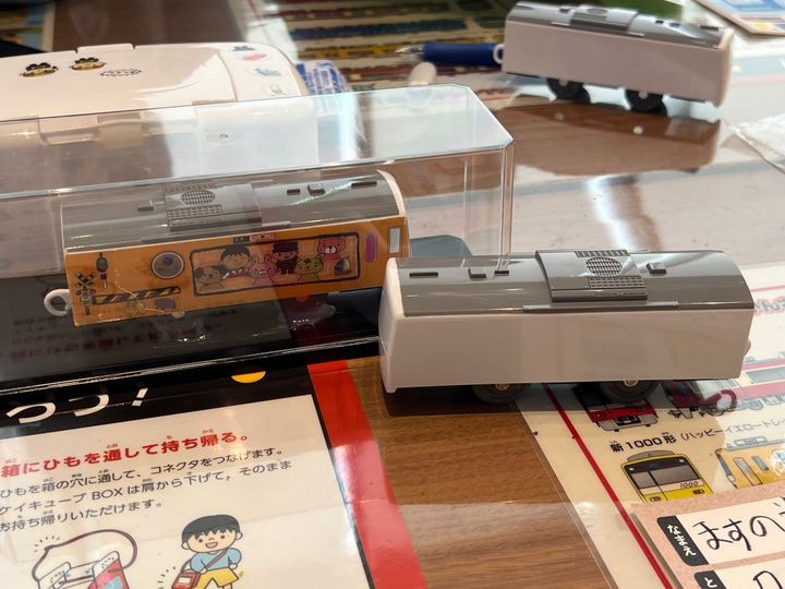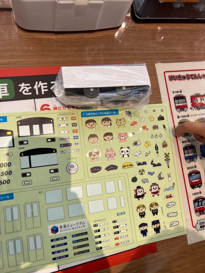 館内では1回1000円で自分だけのオリジナル車両が作れちゃいます。シールなどでデコレーションしたものを縮小してシールにしてもらい、車両に貼り付けます。
