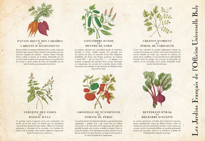 視覚と嗅覚、触覚の3つの感覚で楽しめる特別な仕掛けが盛り込まれた書籍、『オフィシーヌ・ユニヴェルセル・ビュリーの香りの植物図鑑』が登場。トマトやクレソン、ルバーブなど、さまざまな野菜の香りを詰め込んだ「レ・ジャルダン・フランセ」コレクション。本コレクションの発表から1周年を記念して、本書は生まれました。〈オフィシーヌ・ユニヴェルセル・ビュリー〉のアーティスティックディレクターであるラムダン・トゥアミと、彼が率いるクリエイティブエージェンシーであるARIのデザイン監修による、ゴールドの文字が刻まれたレトロな佇まい。特殊加工を施した紙面を、指でやさしくこすってみると、瞬く間に〈レ・ジャルダン・フランセ〉コレクションの香りが広がる、遊び心の溢れた特別な図鑑です。