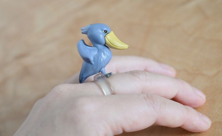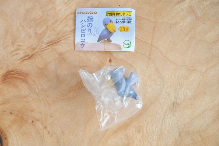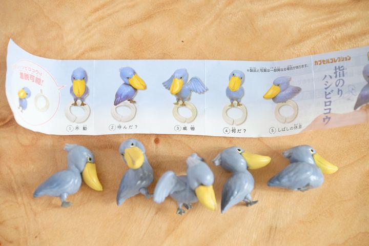 ハシビロコウのガチャガチャは「指のりハシビロコウ」という名称で、1回300円、合計5種類あります。