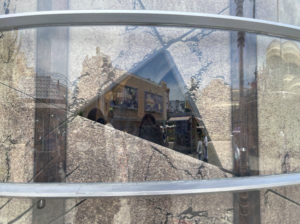 もし顔を見たければ、ショップの外から、この穴を覗いてみてくださいね。刀を作っている様子も見ることができますよ。