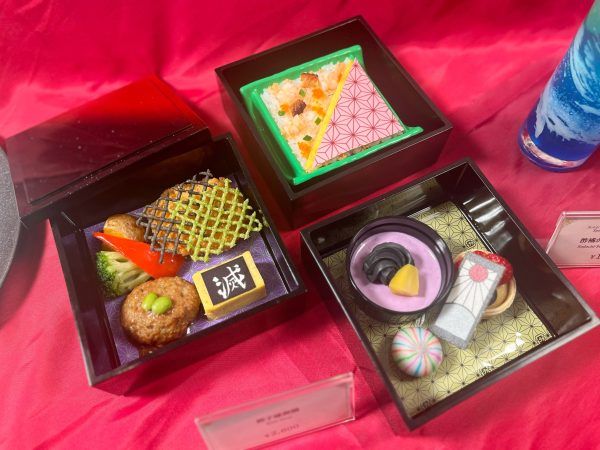 お子さんにおすすめなのが、「御子様御膳」。重箱を開けると、それぞれ炭治郎、禰豆子、玄弥をイメージしたメニューが。色とりどりで見た目にも楽しい一品です(2600円)。