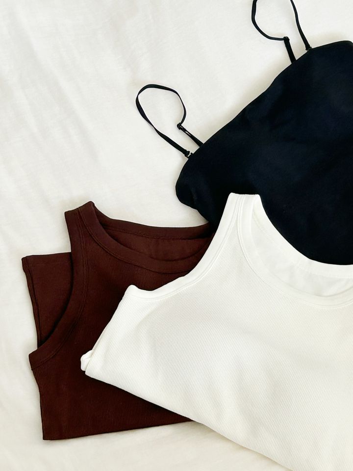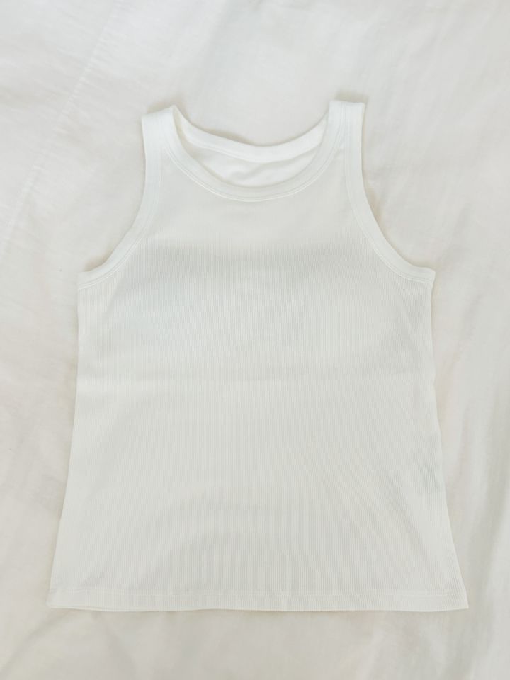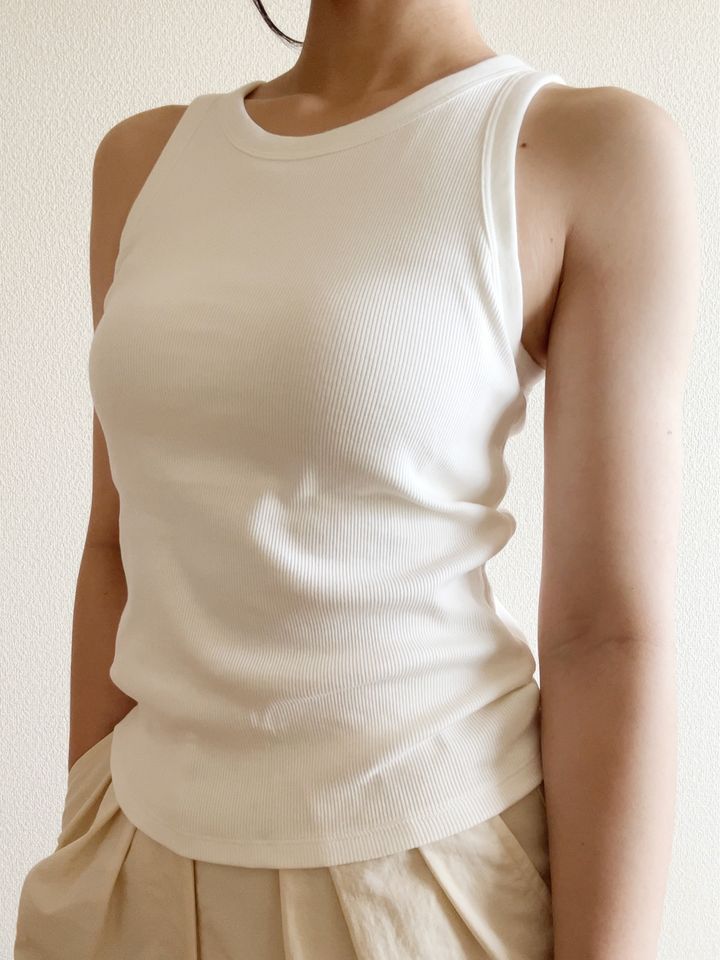 生地がしっかりしていて細めのリブ素材のブラタンクトップ。