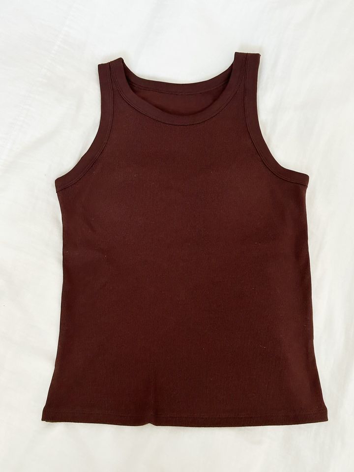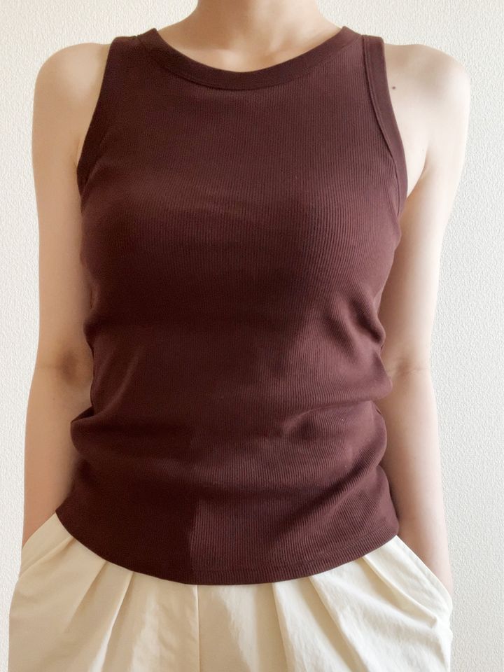 3. 【ユニクロ】新色ブラウン登場!人気の「アメリカンスリーブブラタンクトップ」
