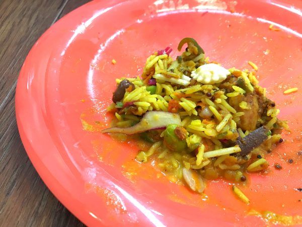 そして、黄色に輝くバスマティライス、これが癖になるおいしさなんです!バターと玉ねぎで炒めてターメリックと塩で炊いているそうですが、これだけで食べても十分旨い!このバスマティライスだけ売ってほしい!といつも思っています(笑)。