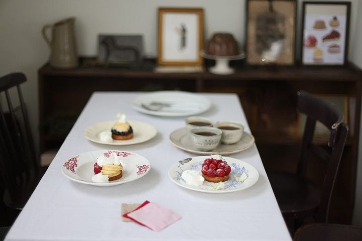 撮影が終わった後、みんなで会話しながらいただいたタルト。大雨のなか、思いがけず幸せなひとときを過ごすことができました。