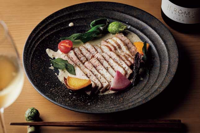 しっとり柔らかくローストした林SPFポークに、コクのあるトンナートソースと鎌倉野菜の彩りを添えて。