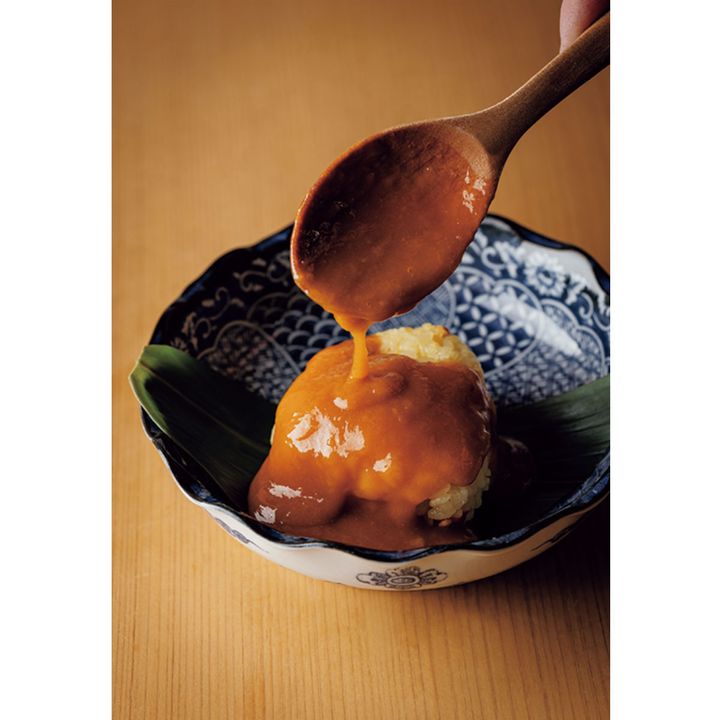 〆はサフランライスのおにぎり。赤海老の頭から取った濃厚なソースをかけてスパニッシュな味わいに。料理はすべて¥4,500のランチコースより