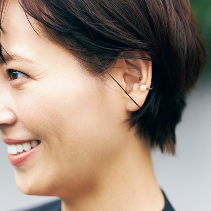 Hirotakaのイヤーカフで上品に遊びを効かせて。シンプルなお仕事スタイルには少しだけ甘さをプラスしたい気分。