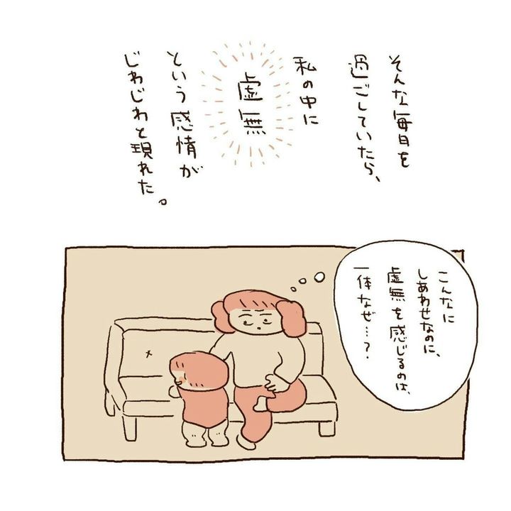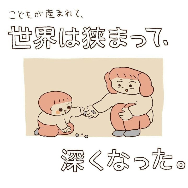 子どもが生まれ、子どもファーストの生活に慣れてくると、あまりにも社会とのつながりがないと感じたり、大人だけで過ごしていた生活の刺激がほしくなったりしますよね。この漫画の作者・伊藤ぽんぽこ(@ito_ponpoko)さんもその1人。幸せだと感じる生活の中に「虚無感」を覚えモヤモヤするように。しかしそんな考え方の傾きを小さな息子は変えてくれたのでした。『世界は狭まって、深くなった』をご覧ください。