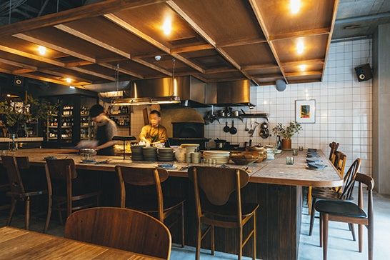 店の空間設計も務めるオーナーの紙本洋輔さんは、元々『エンボカ』のファンだったこともあり『GRIN』の開店は必然的だったという。ピュアな料理にはピュアな思いが似合う。料理も空間も作り手の思いも、すべてが溶け合った店には、心地の良い空気が流れ出す。ピザと楽しむのは、窯焼き料理にナチュラルワイン。デザートだって抜かりなく。いつまでだってこうしていたい。そんな風に思える、夏の金色の時間。