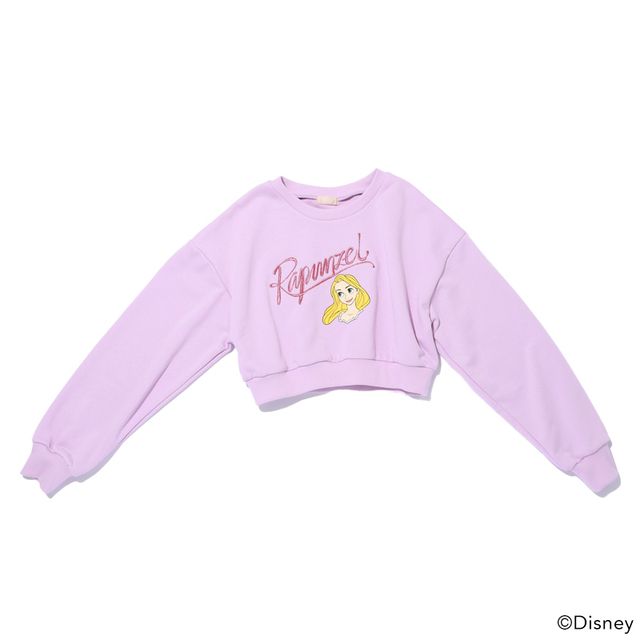 胸元の刺繍はキラキラと上品に輝くラメを使用。さらに目を惹く「ラプンツェル」のプリントが可愛い! クロップド丈なのでハイウエストボトムと合わせるとスタイルアップ効果も抜群です。