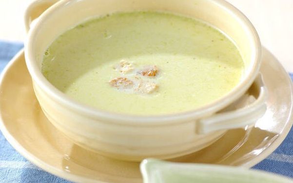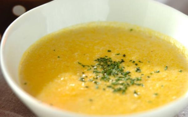生クリーム入りでリッチな口当たりのスープです。温かいままでも冷やしても、おいしくいただけます。スープは粗熱を取ってからミキサーにかけましょう。