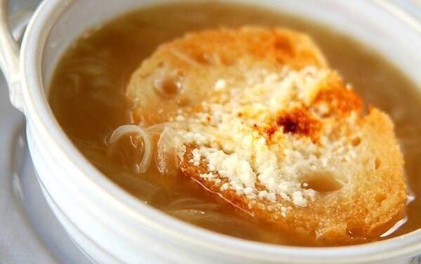 玉ネギの旨味が溶け込んだスープは、シンプルながらもやみつきになる味です。おいしさの秘訣はじっくり炒めて甘みを引き出した飴色玉ネギ。スープをたっぷり吸いこんだフランスパンも絶品です。