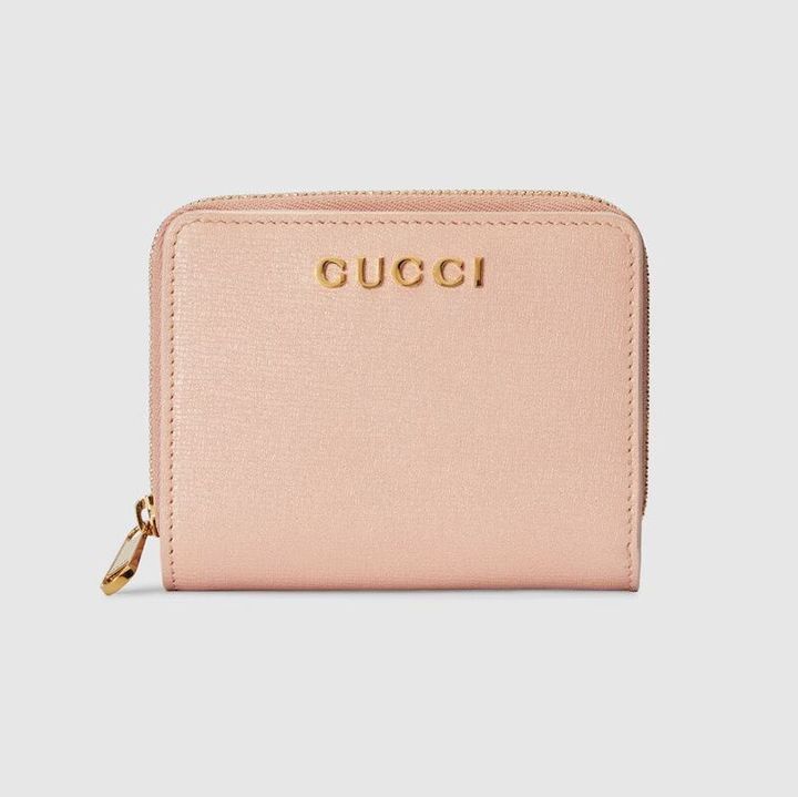 ライトピンクのレザーにGUCCIのゴールドロゴが上品かつ華やかな印象。飽きずに使えるシンプルなデザイン。[ヨコ11×タテ9×マチ2.5㎝、カードスロット4、ジップポケット1、紙幣入れ1]財布¥83,600(グッチ/)