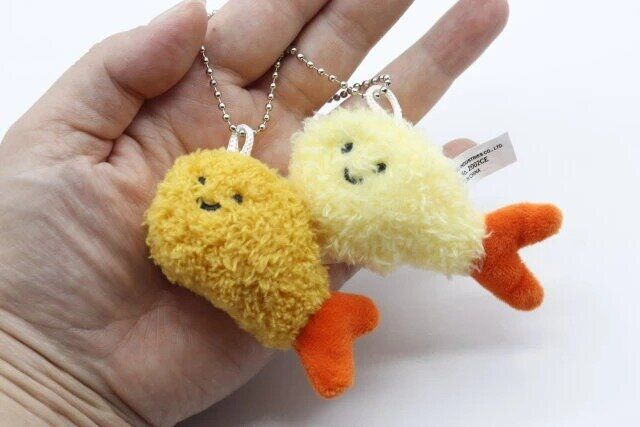 今ダイソーで可愛すぎると話題になっている『キーチェーン(エビフライ)』をはじめとした、食べ物キーホルダーマスコットたち。