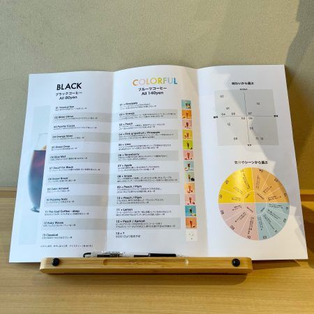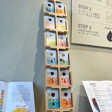 まずは、あえてコーヒー豆の種類ではなく、味わいをイメージしたネーミングが書かれたメニューから、自分の好きなコーヒーを選びます。他にも、味のバランスや、飲むシーンによって選ぶこともできました。