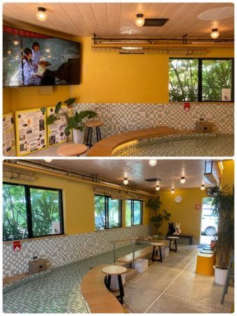 ドリンク提供をするカウンターが新しく変わっていました!ここで注文した商品を持って隣の足湯コーナーに移動出来るので、ドリンク類を強化!種類も増えたようです!