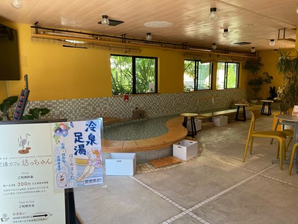 GOOD CACAO、足湯カフェ坊っちゃんは、共にホテル古湧園遥さんが営んでいるカフェなので、古湧園遥さんに宿泊のお客様は、滞在中、足湯は無料で利用できるそうです。 ちなみに、足湯カフェ坊っちゃんへの飲食の持ち込みは、『GOODCACAO』のほか『谷本かまぼこ』さんで購入したメニューであればオッケーです!!
