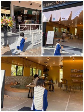 そういえば、息子は約2年越しの足湯カフェ坊っちゃん!!休憩しながら、記憶を辿ると、息子の七五三を伊佐爾波神社で終えて、その後、撮影を兼ねてぶらりやってきたタイミングで、足湯カフェ坊っちゃんが、ちょうどオープンしたばかりでした!その時の様子も運良く撮ってました!こんなところにお風呂がある〜!って大興奮してましたが…この日は飲み物だけ買って、引き続き道後での七五三撮影をして帰りました。