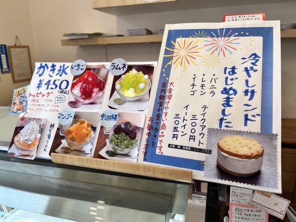 そのショーケースの上、かき氷のPOPの隣にお目当ての冷やしサンドのPOPを発見!