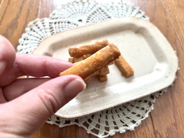 そして味はというと、これは少し前から流行っている塩クッキーに当たりますね。全く甘くないというわけではないのですが、前面に出てくるのは甘味ではなく、チーズの塩味です。