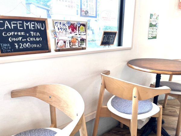 パティスリー デュボンタンさんの店内にはテーブル2つ分のイートインスペースもあってありがたいです♪コーヒーと紅茶も注文可能です。