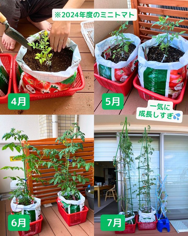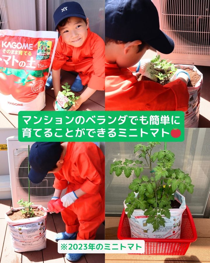 小学校のミニトマトとは別で、ミニトマトを毎年栽培している我が家。マンションのベランダで、プランターなしで簡単にミニトマトが栽培できると知り、3年前からチャレンジしています。