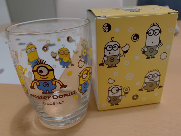 ミニオンドーナッツに加えて、ミスドーオリジナルグラスも販売中!