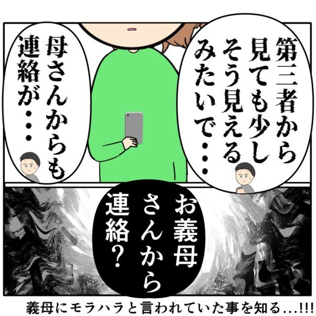 「第三者から見ても少しそう見えるみたいで・・・母さんからも連絡が」と、すみれさんのモラハラは嘘とは言い切れないと言い出した良し男さん。この言葉で、義母が自分のことをモラハラと言っていたことを知ってしまったすみれさん、どれほど驚いたことでしょう。