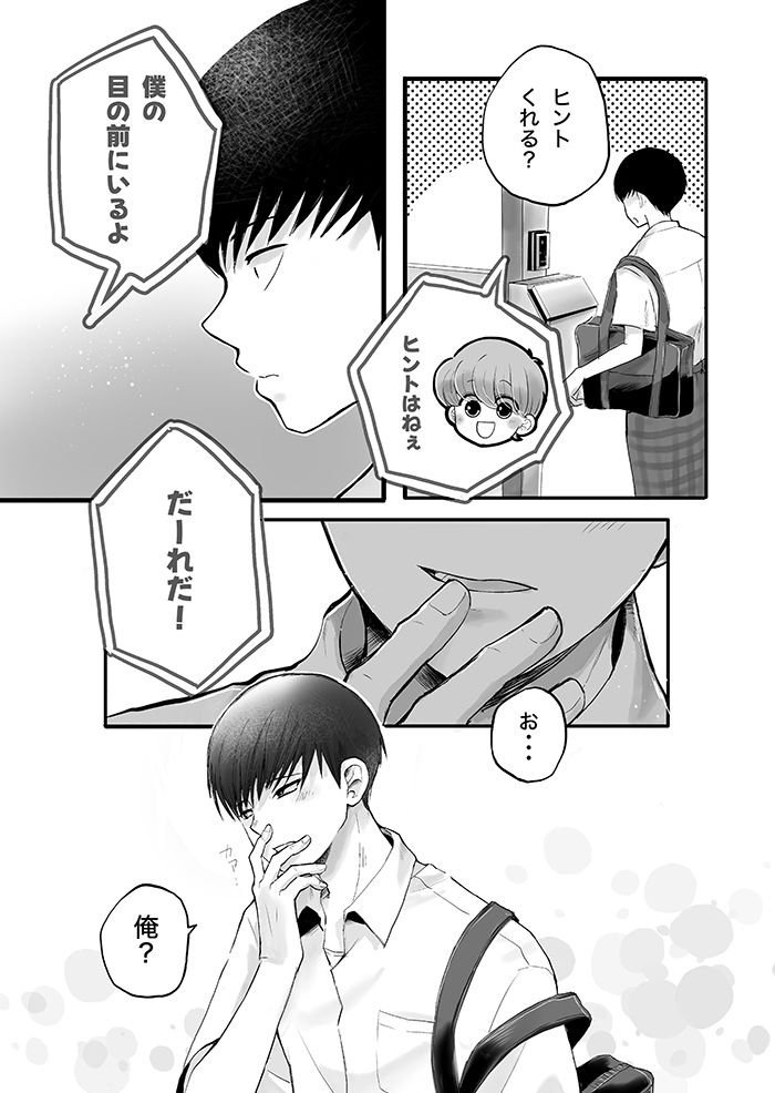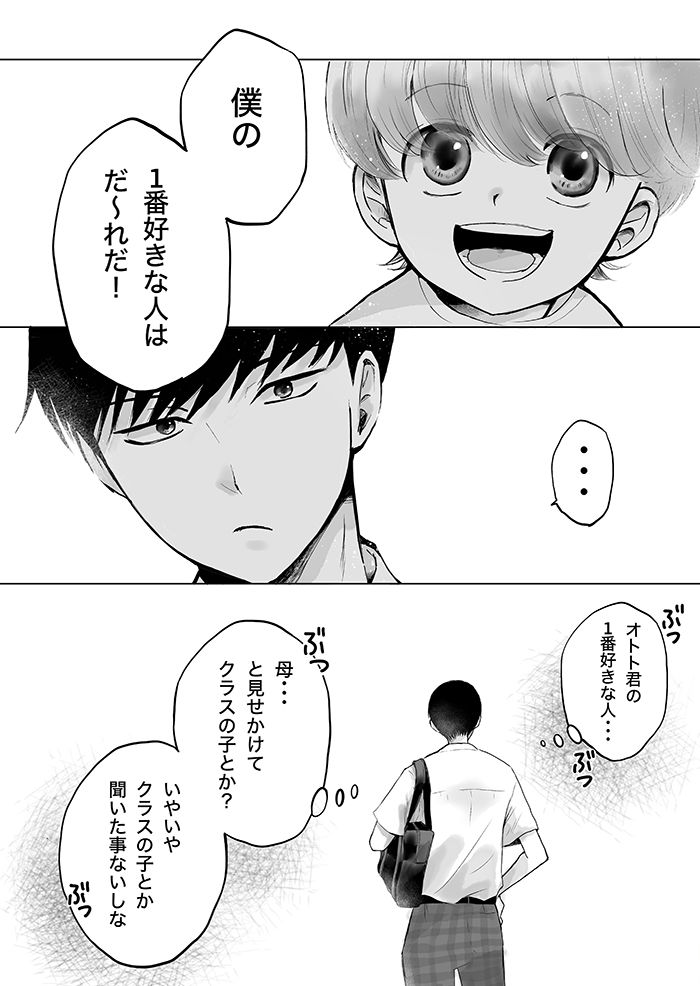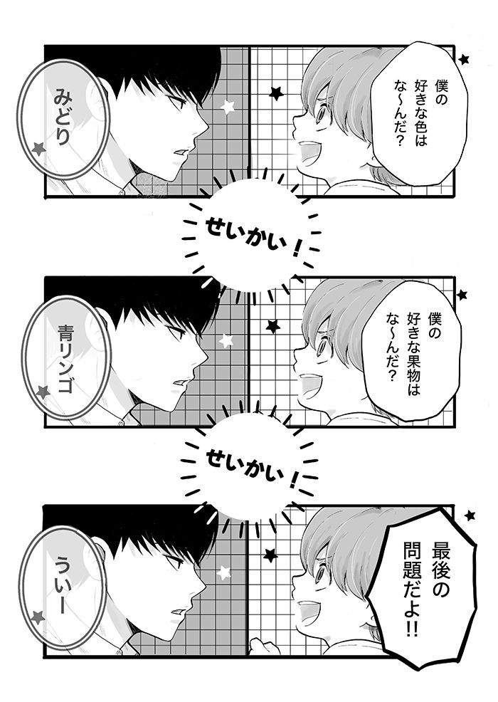 3. 「お…俺?」オトトくんの質問に、思わず照れて答えた高校生のニイニ。正解は…?【10歳差兄弟!ぼくのニイニは高校生・22】