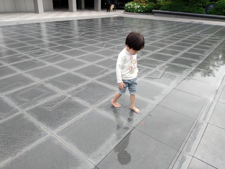 子どもたちは靴下を脱いで水の感触でうきうき。