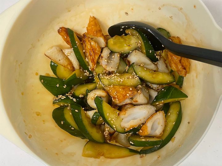ちくわの弾力と旬のきゅうりのシャキシャキ感が絶妙ですね!