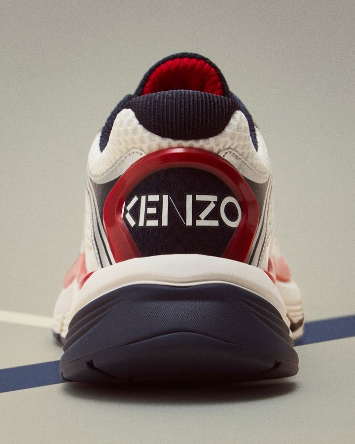 高い品質と技術レベルを実現するため、ケンゾーはスニーカー作りに長けたベトナムの専門工場と協力しているとのこと。アッパーのテクニカルポリウレタンは、最適な弾力性を実現するため、メッシュ素材と組み合わされた。また、衝撃を吸収する軽量なアウトソールは、従来のランニングシューズよりもタフな仕上がりだという。