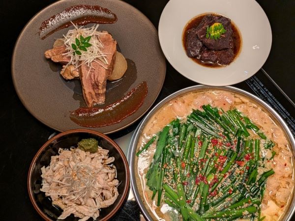 1984年の創業当時一般的だった醤油ベースではなく、味噌をベースにした創業当時からの「もつ鍋」と、お勧めの一品料理「牛の酢もつ」「ゆでタンと煮込み大根」「牛ほほ肉の甘煮」を試食させていただきました。