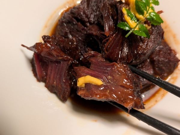 長時間煮込んだという「牛ほほ肉の甘煮」は、お箸でホロホロと崩れるくらいに柔らかく、濃いめの味付けはお酒もほしくなる一品ですよ。