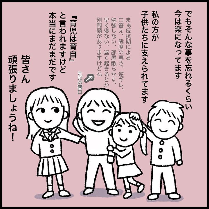 小さな子どもたちの世話に追われ、その時は余裕がなくても、後から振り返ると、「幸せだった」と感じるものですよね。とはいえ、育児が大変なのも事実。「だからといってあの頃に戻りたいかと言われたら 嫌」というおも茶さんの気持ちもよくわかります。