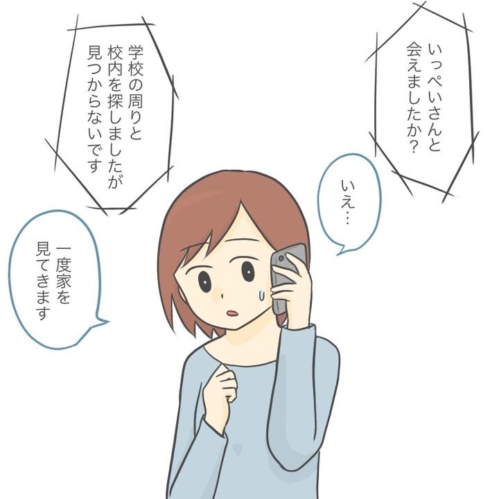 いっぺいくんが学校から帰って来ず、動揺する小熊猫ころりさん。方々を探しても見つかりませんが、学校から電話があり、無事に帰ってきたのでした。