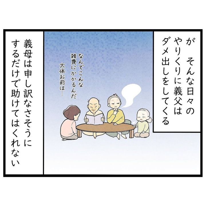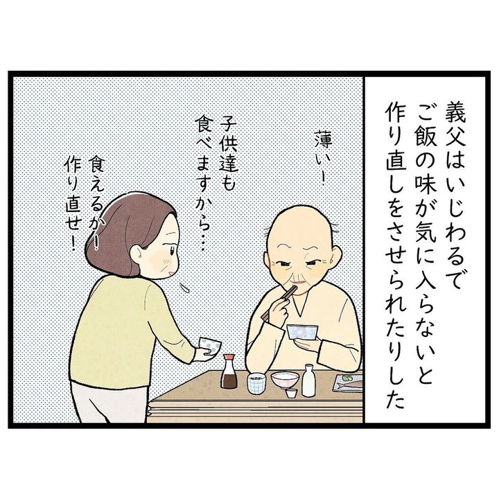 そんな状況下でも、子どもたちには苦労をかけまいと必死にやりくりを続けた玉江さん。しかし、そのやりくりに義父がダメ出しをしていました…。さらには、ご飯の味が気に入らないと、何度も作り直しをさせられることも!そのたびに、玉江さんは必死に耐え続けたのです。