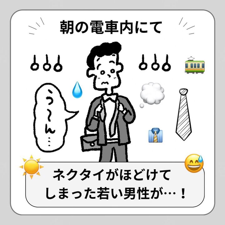 電車内にネクタイが結べずに困る男性がいて…?