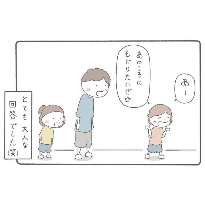 「いつおとなになったの?」と聞かれて戸惑う先生。するとそこに別の児童がやってきて「『こどものころにもどりたいなあ』っておもったらもう大人さ」と一言。その言葉に「とても大人な回答でした」と感心するのでした。