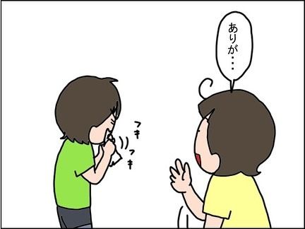 2. 2歳息子「ちょっと待ってて」ティッシュを頼むも…目の前での“まさかの行動”に「吹いた」「喜べない」