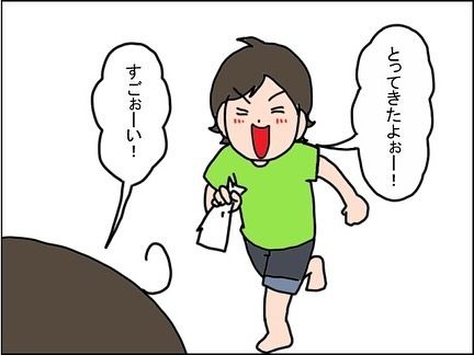 自慢気に鼻を拭き、ゴミ捨てもできるところを見せてくれるなーさんが可愛らしいです!「しゅごーい!」と、自分で褒めるところも可愛いですね。