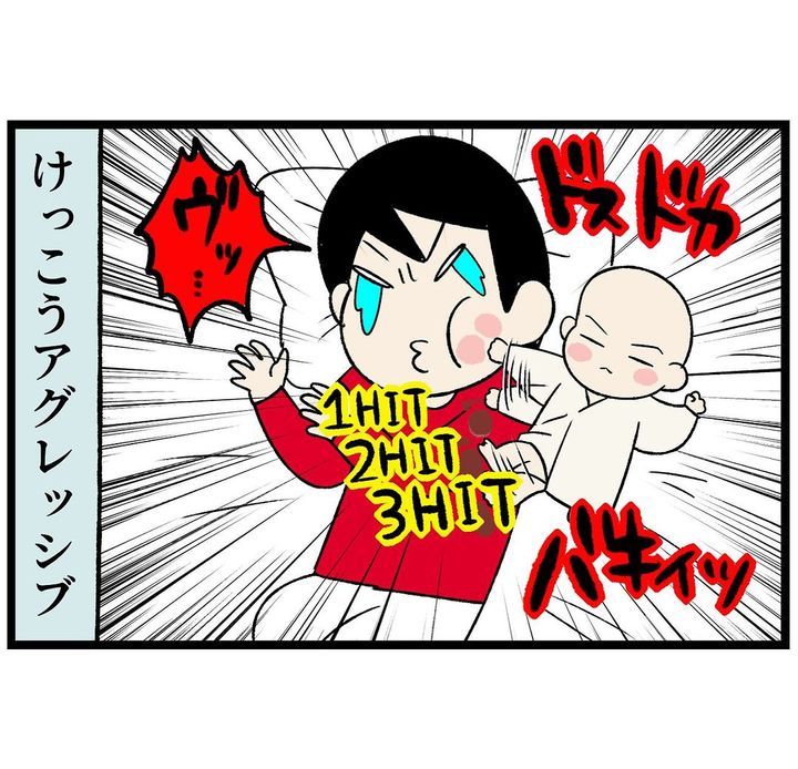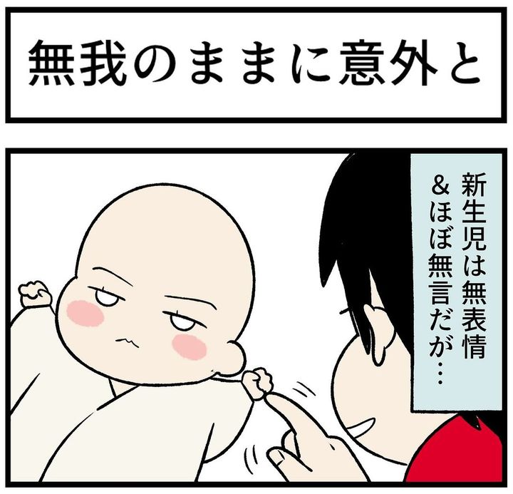 無表情&無言の新生児は、無我のままに攻撃してくる!宮路ひまさんは娘さんのおこめつぶちゃんが新生児の頃、手の甲を思いっきりひねり上げられたことがあったそう。新生児は自分の身体を支えられるだけの力があるそうで、か弱く見えつつも強いのだとか。添い寝中はパンチやキックを浴びせられ、新生児のアグレッシブさに翻弄されたのでした…!