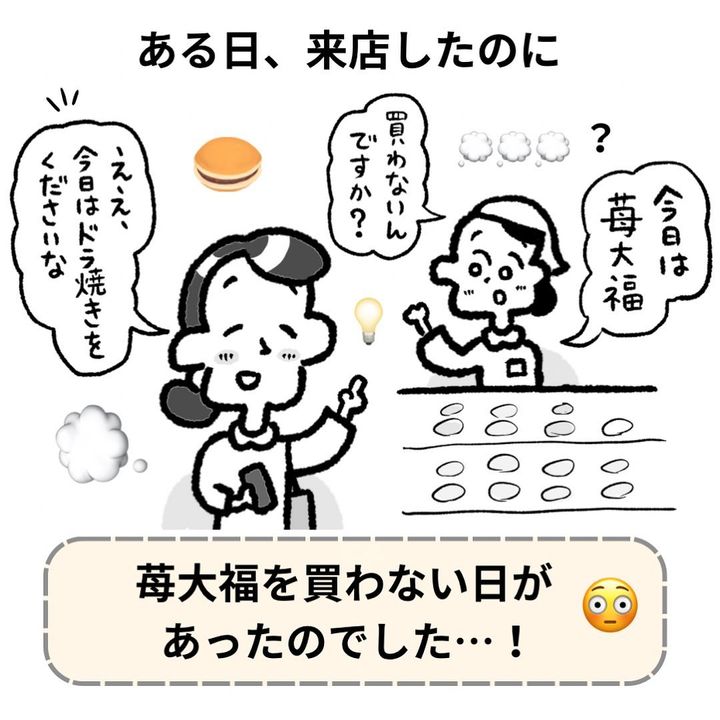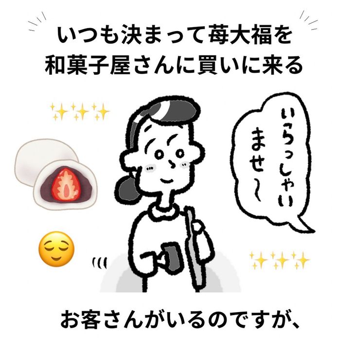 「今日は苺大福買わないんですか?」いつも購入するのに…“まさかの理由”に「温かい世界」「癒されます」