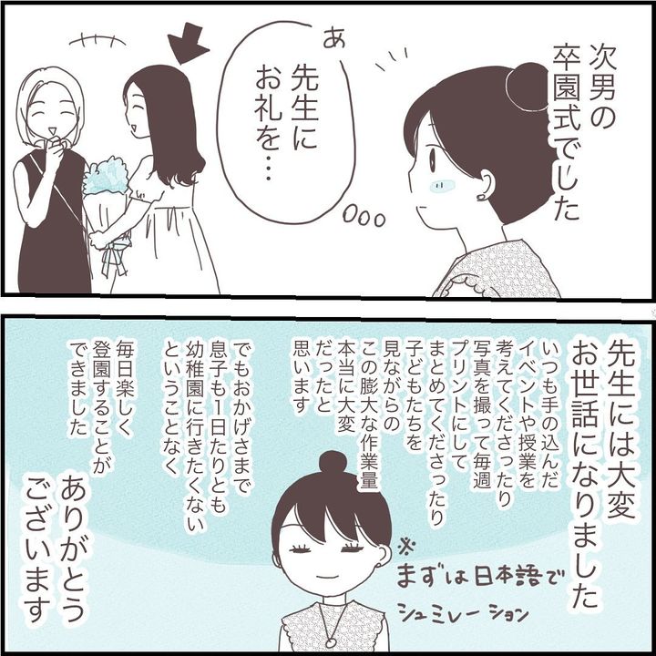 樋口みみさんはあーくんの卒園式で、先生にお礼を伝えようとしたところ…?